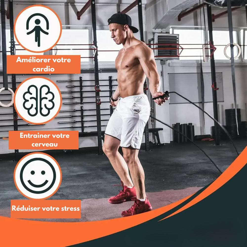 La corde à sauter Cardio est un équipement essentiel pour les coachs et éducateurs sportifs souhaitant améliorer l’endurance cardiovasculaire, la coordination et l’agilité de leurs clients. Conçue pour un usage intensif, elle offre une rotation fluide et un ajustement facile, permettant des séances variées et adaptées à tous les niveaux. Compacte et légère, elle s’intègre parfaitement dans tout programme d’entraînement.