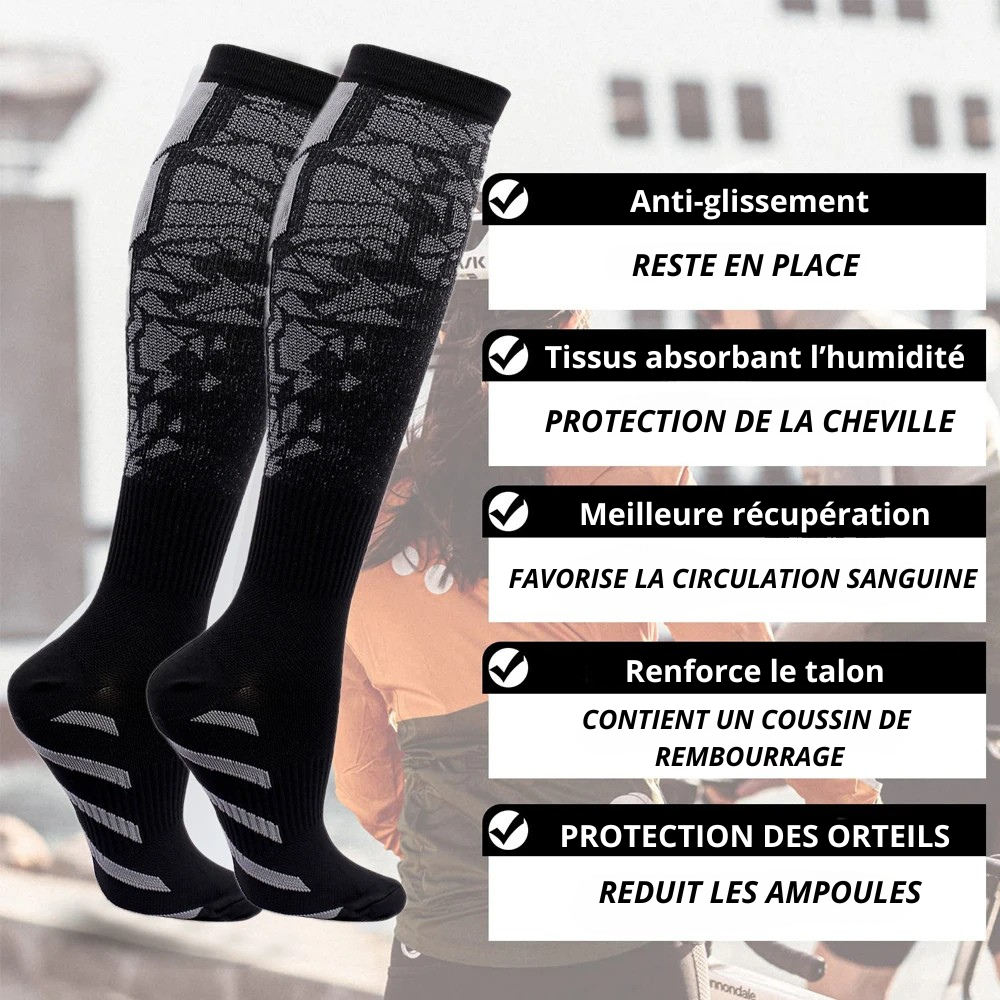 Ressentez l'émotion de courir comme si vous aviez 20 ans avec les chaussettes de compression. Grâce à une meilleure circulation et une réduction des douleurs, elles vous permettent de prendre des risques et d'atteindre de nouveaux sommets. Prêt à relever le défi ?