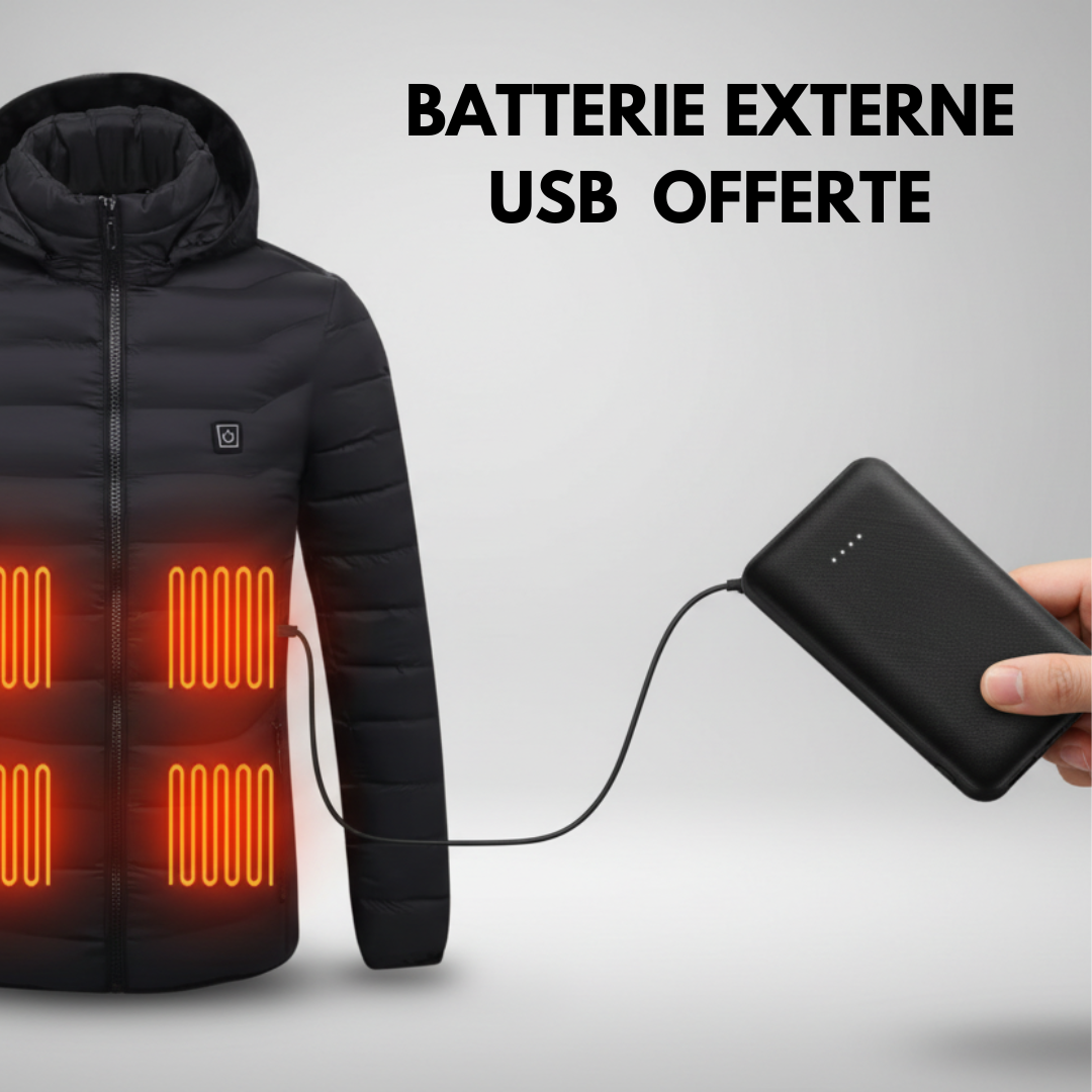 Les trois niveaux de température (36 °C, 45 °C, 56 °C) vous permettent de vous adapter à toutes les conditions météo et l'interface USB la rend compatible avec la majorité des batteries externes (non fournies).
